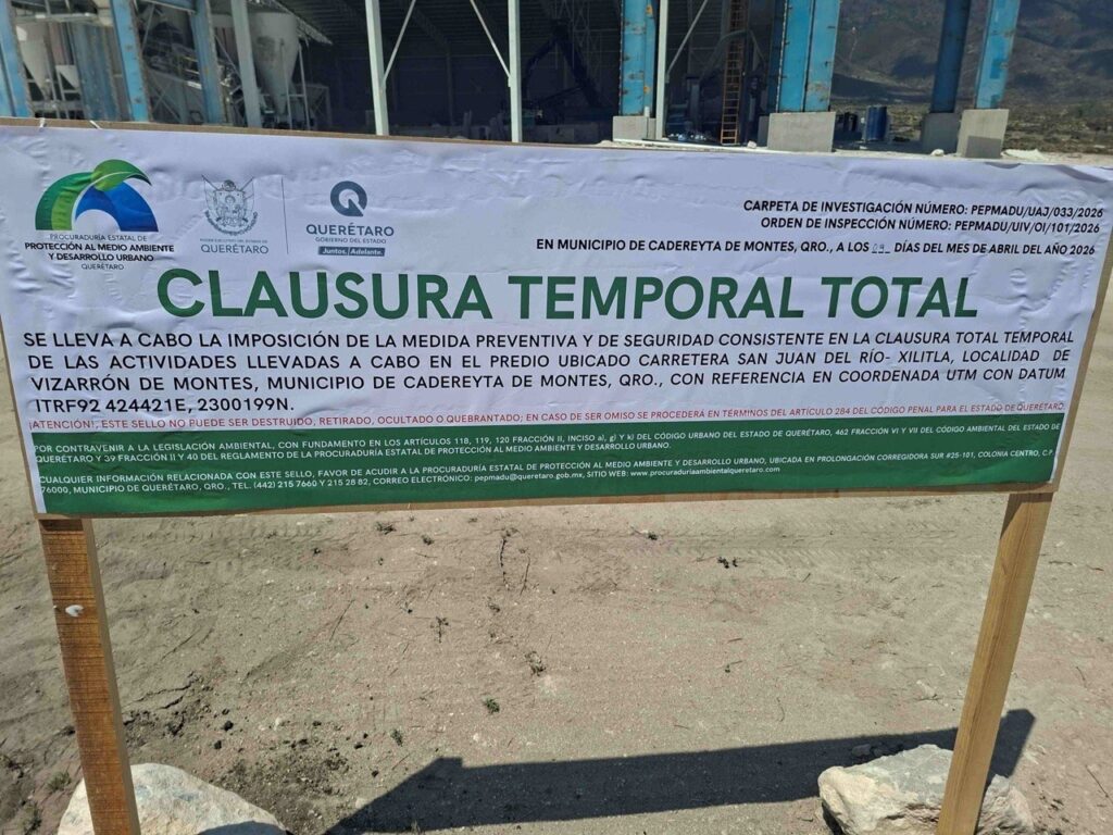 En la delegación de Vizarrón, municipio de Cadereyta de Montes, la Procuraduría Estatal de Protección al Medio Ambiente (PEPMADU) clausuró una planta de trituración y molienda de material pétreo.
