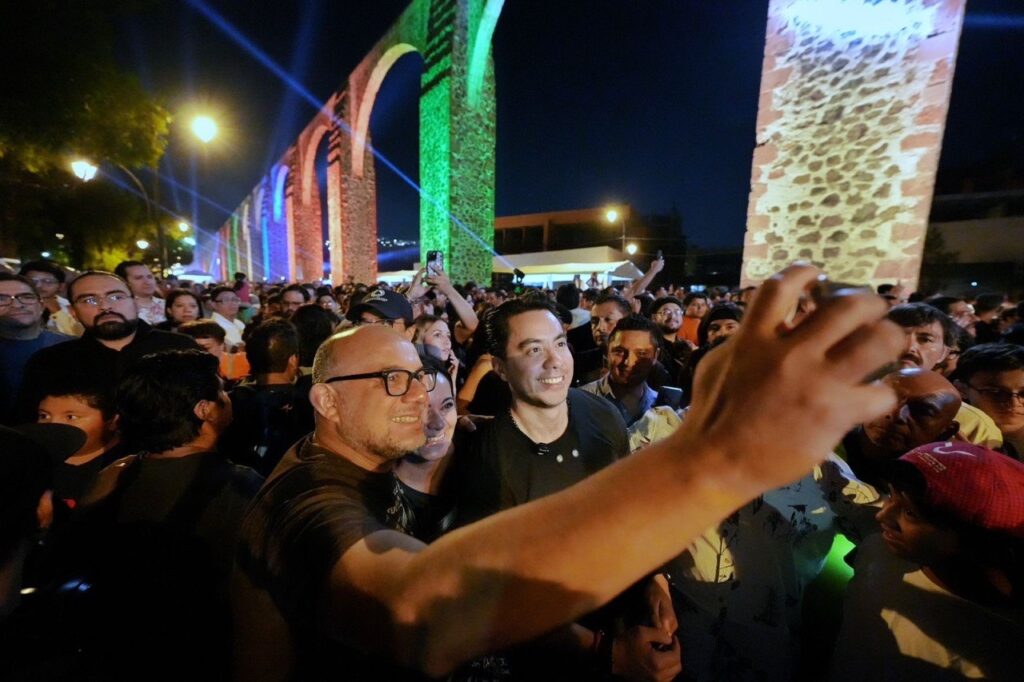 “El máximo símbolo de la ciudad de Querétaro, sin duda, va ser una noche inolvidable para miles de personas. Fue muchísima alegría ver a miles de personas disfrutando la calzada de los arcos, ver familias enteras disfrutando esta gran, gran noche. Creo que va ser una noche recordada por muchos años”, manifestó el alcalde Felipe Fernando “Felifer” Macías, quien acudió al multitudinario evento realizado la noche del 25 de abril.
